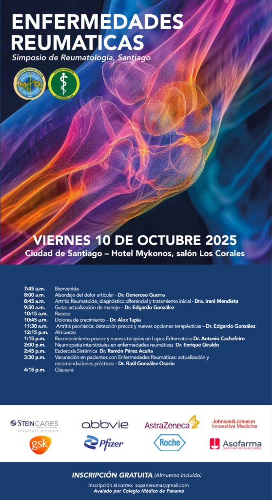La Sociedad Panameña de Reumatología te invita a una jornada de actualización médica, donde destacados especialistas compartirán temas de vanguardia en reumatología.
